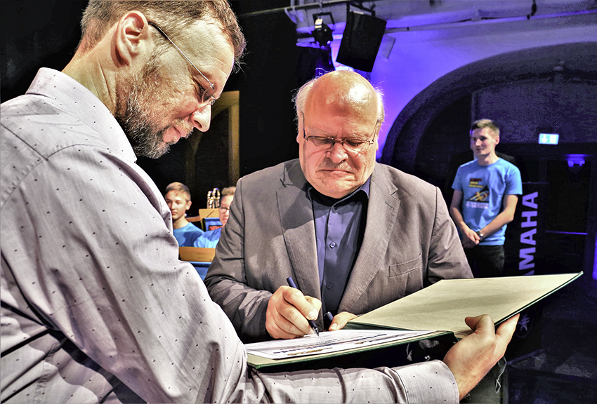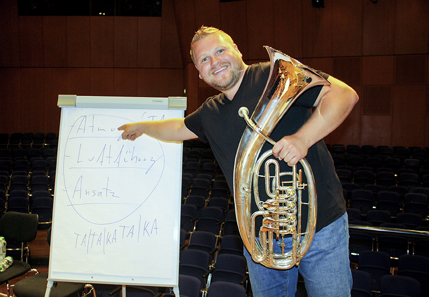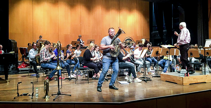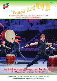 Improvisation nachspielen, dann langsam verändern und so seine eigene Improvisation entwickeln. Nein, Improvisation ist kein Ge- heimnis und kein Wunderding. Das wichtigste bei der ganzen Sa- che ist: Einfach mal damit anzu- fangen und einfach spielen. Man muss Fehler zulassen, den Mut haben auch mal einen Chorus zu verbocken. Miles Davis soll einmal gesagt haben: „Ob der Ton richtig ist oder nicht, entscheidet der nächste Ton.“ Na, dann mal los – und viel Spass! Joachim Kunze verschiedenen Interpreten anhö- ren. Man wird feststellen, dass sich die meisten Interpreten nicht ganz an den Notentext halten und das Thema oft freier interpretie- ren. Der nächste Schritt wäre, das Thema auswendig zu lernen, erst nach genauem Notentext, dann mal die freiere Interpretation pro- bieren und sich selber mal freier durch das Thema bewegen, es leicht verändern und schon befin- det man sich auf dem Weg zur Im- provisation. Um ein Gefühl für die Akkordfolge zu bekommen, kann man die Akkordtöne mitspielen. Man kann probieren einfach mal ein paar Phrasen des Interpreten nachspielen, oder auch die kom- plette Improvisation raushören und aufschreiben. Das wird beim Ersten mal schwierig und langsam gehen, aber auch hier macht Übung den Meister. Man kann die Fachberichte Infos:www.jupiter.info www.jo-kunze.de Joachim J.K. Kunze (*1966) studierte Instrumentalpädagogik in Mainz. Er gehört zu den vielseitigsten Trompetern Europas. Warme, gefühlvolle Töne bis hin zu Highnotes im viergestrichenen Bereich – sein Klangspektrum füllt die ganze Bandbreite der Trompete aus. Dies machte ihn zu einem gefragten Trompeter in verschiedenen Funk-, Rock-, Jazz und Big- bands. Inzwischen konzentriert er sich hauptsächlich auf seine eigenen Projekte, die »Firehorns«, »2play« sowie »Bummeldaun Syndrom«, in denen eigene Kompositionen gespielt werden. Er ist Musiklehrer an der Adolf- Reichwein-Schule in Friedberg, Blechblasinstrumente unterrichtet er an der Musikschulen Bad Nauheim. Als Dozent der Firma Jupiter gibt er Workshops in Deutschland, Österreich und der Schweiz. Als Komponist stammen alle Stücke der beiden CDs der »Firehorns« aus seiner Feder. Neben Kompositionen für Blech- bläser, Gitarren, Streicher, Holzbläser und Ensembles mit verschie- densten Besetzungen auch Musicals für Schulen. Als Autor für Instru- mentalschulen, Bücher und Werke (»Trumpet Power Play«, »Start frei! – Einfach Trompete lernen«, »Alles Kopfsache? «, »ORETAG«) hat er sich inzwischen einen Namen gemacht. Bei zahlreichen Kom- positionswettbewerben erhielt er bereits Auszeichnungen. Renold Quade „Euregio“ von Kurt Gäble Crescendo … aus den Notenschrank Mit Musik die Ideale eu- ropäischen Gedanken- gutes in Erinnerung zu rufen hat eine reiche und wohl ge- pflegte Tradition. Die „Europa- hymne“, eine Instrumentalfassung des Hauptthemas der „Ode an die Freude“ aus dem letzten Satz der neunten Sinfonie von Ludwig van Beethoven, oder die „Eurovisions- melodie“ von Marc Antoine Char- pentier sind ganz offiziell auser- korene Signalwerke. Sie stimmen immer wieder auf sympathische Art und Weise darauf ein, Grenzen zu überwinden und Gemeinsames im Geiste Europas zu erleben. Wir in NRW leben im Westen Deutschlands in einer echten „Eu- regio“, in einem Gebiet, in dem viele Grenzen aneinanderstoßen. Angefangen von „Kölnern“ und „Düsseldorfern“, über „Rheinlän- der“ und „Westfalen“, liegen wir im Herzen Europas in unmittelba- rer Nähe zu den Niederlanden und Belgien, und auch Luxemburg und Frankreich sind nicht weit. Lieb gewonnene Frotzeleien un- tereinander sind längst nur Gar- nitur und genau genommen au- genzwinkernder Ausdruck von An- erkennung und Wertschätzung von individuellen Lebensarten der geschätzten Nachbarn, alle geeint im Gedanken frei und friedlich zu leben. Und natürlich auch im Sü- den, Norden und Osten, selbstver- ständlich in der ganzen Welt, tref- fen Lebenseinstellungen und Kul- turen aufeinander. Schön, wenn wir daraus etwas daraus! Der Komponist Kurt Gäble Kurt Gäble sieht sich als Kompo- nist, Arrangeur, Dirigent, Musiker und Musikpädagoge. 1953 gebo- ren, erinnert er sich bewusst an gemeinsames Singen mit der Mut- ter in frühster Kindheit, an die Blockflöte und etliche Instrumen- te, die er sich selber beibrachte. Musikbegeistert wie er war wuchs schnell sein Bedürfnis eigene Me- lodien und Klänge zu erschaffen. Sein Musikstudium in Augsburg, sowie seine Studien in Kunst und Pädagogik eine logische Konse- quenz. Als bekennender Familien- und Naturmensch ist er fest in seiner Heimatgemeinde Lauben bei Memmingen verwurzelt. Er schätzt das Leben auf dem Dorf, die dortigen Werte und Traditio- nen. Themen, die christlich, sozial oder auch ökologisch orientiert sind inspirieren ihn, weil diese In- halte für ihn ein besonderes Ge- meinschaftsgefühl ermöglichen. Kurt Gäble hat weit über 100 Ori- ginalwerke und Bearbeitungen ge- schaffen. Seine musikalische Lei- denschaft gehört dem Blasorches- ter. „Auf der Suche nach den rich- tigen Klängen, lasse ich mich ger- ne von der Natur inspirieren.“ Das 1. Euregio- Musikfestival 1999 im Allgäu Kurt Gäble komponierte seine Fantasie „Euregio“ im Jahre 1999 11
