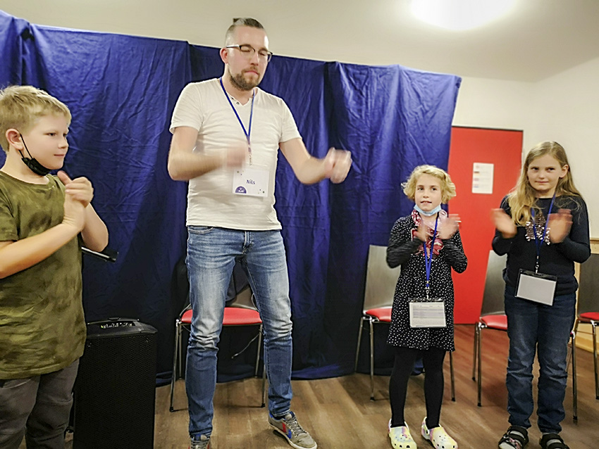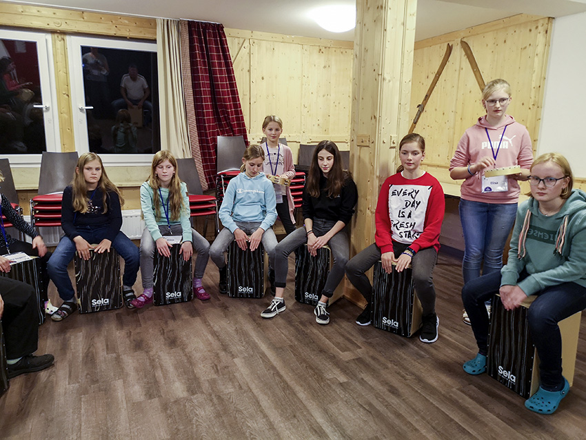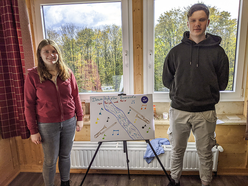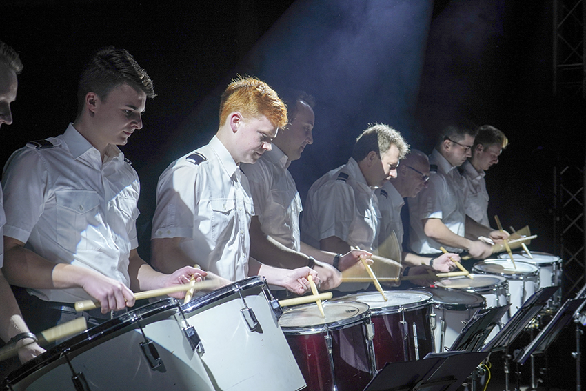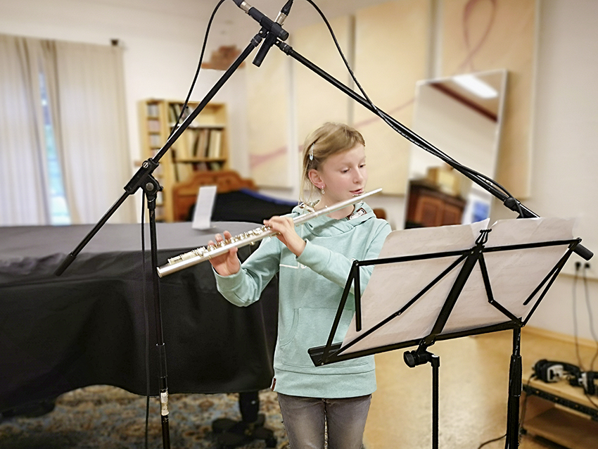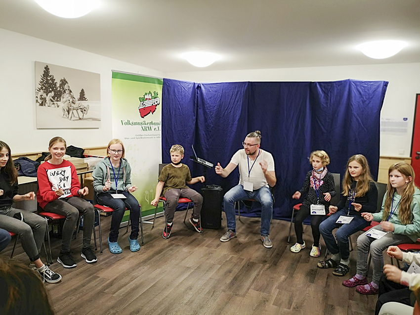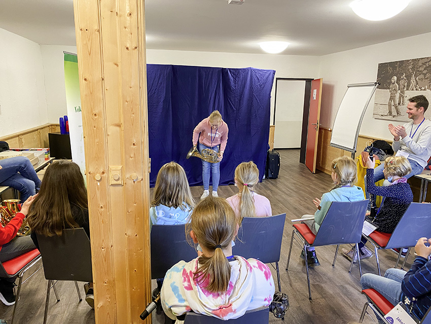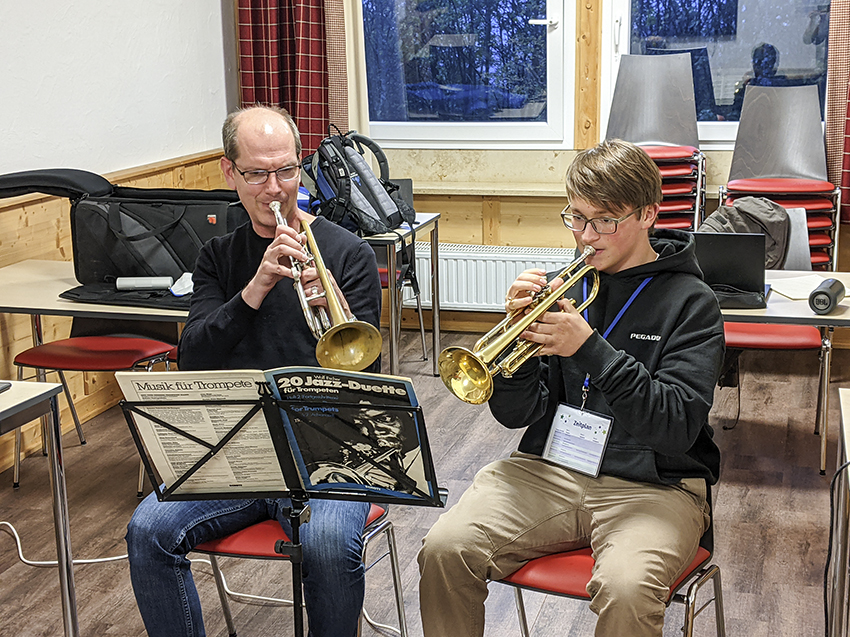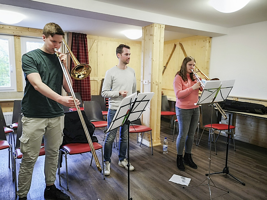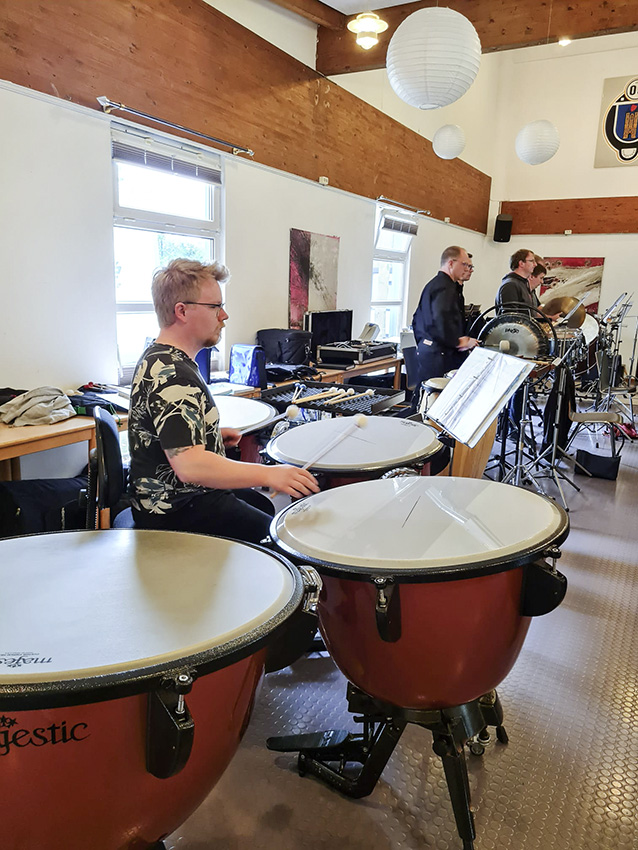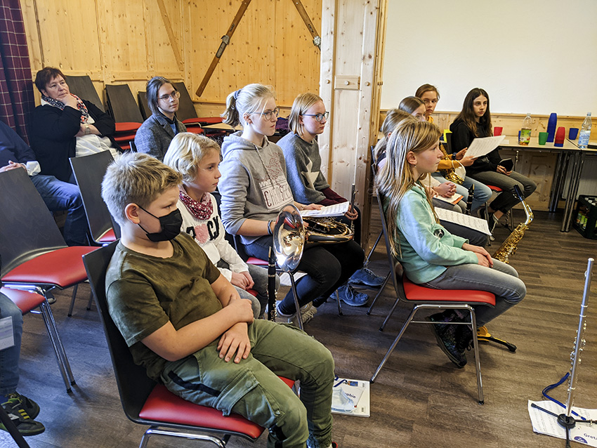 ten Satzes wäre wörtlich mit „Lob- gesang“ zu übersetzen. Es wird ein beschauliches und ruhiges „Loben“, eine Musik, die zum Seufzen und immer wieder Durch- atmen einlädt. Erinnert man sich an den Titel des Werkes, Mandel, ein fließendes Gewässer in Bel- gien, so kann man kleine, ruhige Wellenbewegungen des Flüss- chens durchaus mit den Ohren se- hen. Nach kurzer, viertaktiger Ein- leitung, die Tempo (langsam), Takt (3er) und Tongeschlecht (Moll) de- finiert, entwickelt sich ab A, ei- gentlich über volle 22 Takte, eine lyrische Melodieführung, die nach ihren vier prägenden Eingangs- takten nicht wirklich enden will. A beginnt solistisch in Oboe (bzw. Altsaxophon), zart begleitet vom mittleren und tiefen Blech. Bari- ton (Fagott) ist im jeweils vierten Takt Dialogpartner und Überleiter. Ab B verdichtet sich die ganze Partitur. Die Klarinetten spinnen in Sequenzen das Kopfmotiv wei- ter und bereiten den Weg zu einer (für diesen Satz recht) großen or- chestralen Öffnung (immer noch ohne Trompeten) in C, die vor D in einer „Fragezeichenfermate“ zunächst endet. D greift in verän- derter Instrumentation den Grundgedanken A wieder auf. In E zunächst dito, bevor dann, mit dem Kopfmotiv in den hohen Höl- zern, gestützt vom tief instrumen- tierten Orchester, „Praise“ im zar- ten pp verträumt verklingt. Die Trompeten haben im diesem Satz eigentlich so gut wie nichts zu tun. Ihnen gebührt aber die Ehre, sieben Takte vor Schluss mit Überleitungsmotiv und kurzem Themeneinsatz das Satzende ein- zuleiten. 3. Jubilee In mittlerer Lage beginnen die „Weichklinger“ des Orchesters, gemeinsam mit den Schlagwer- kern, den zunächst bestimmenden rhythmischen Teppich auszurol- len, auf dem sich ab A das erste Thema setzt. Auch dieses, wie im ersten Satz, wird üppiger instru- mentiert wiederholt und die Wie- derholung mit einer kleinen Ge- genstimme angereichert. B bricht dann mit den bislang eher konven- tionell bedienten Erwartungen. Eine Art Zwischenspiel, zunächst harmonisch auf der Dominante mit alterierten Akzenten, später mit Quartschichtungen, erzeugt fragende Spannung, die sich 2 Takte vor D in einem neuen rhyth- mischen Teppich auflöst. D prä- sentiert über zweimal vier Takte ein zweites kurzes Thema, in Moll, stampfend und eher ernst. E greift, minimal nuanciert, „Tep- pich 1“ wieder auf und F bringt das erste Thema zurück, diesmal in den Posaunen (Tenorsaxophon; Fagott). G wiederholt, melodisch geführt von den Hölzern und rhythmisch, harmonisch strenger eingegrenzt von Restorchester, aber noch ohne Trompeten. De- nen ist wieder eine Spezialaufga- be zugeteilt. Im fünften Takt von G (und somit auch im fünften Takt des Themas) beginnen sie, den Rückzug einzuläuten, der im sieb- ten Thementakt, quasi etwas ver- früht, ganz allgemein einsetzt. Fünf Takte vor Schluss erklingt, strahlend, unis und im ff, noch ein- mal der Themenkopf und endet, schlüssig wie zügig, nach kurzen Ritardando-Akkorden in einer Fer- mate. Praktische Hinweise, nicht nur für die/den Dirigentin/en Intrada Eröffnung ruhig, durchaus fan- farenartigen, aber mit mildem ff. Nicht zuletzt, damit die Gegenläu- figkeit der „Basspartie“, beson- ders in Takt 4, differenziert wahr- nehmbar ist. Es ist sicher sinnvoll, dass mf/crescendo Takt 6 einem weichen fp ähnelnd anzulegen. Forte/ben rit. in Takt 6 bei Posau- nen und Trompeten mit dem Ziel Energie für den Tempowechsel anzustauen. 2/4 Takt: Tempo, vor allem „Fluss“ aufnehmen. A: locker fließen lassen, auch bei der klangsteigernden Wieder- holung. Trotz „Verdichtung“ die Nebenstimme erkennbar heraus- arbeiten. B: Artikulation ist Trumpf; sie regelt quasi alles. C: zwei Takt vor C kleinen über- leitenden „Belleffekt“ nutzen, um in C im klar strukturierten Achtel- Sechzehntel-Groove ein „neues Bild“ zu erleben. Dialogisieren von Holz-Blech in D inszenieren, damit sich das Fra- ge- und Antwortspiel in E im Blech auflöst und die Musik mit dem Thema dann klar weiter vo- ranschreitet. F präsentiert im gan- zen Orchester zunächst die erste Themenhälfte. Der dynamische Mix aus forte und mezzoforte hilft nicht zu opulent abzugleiten. Denn, 9 Takte vor Schluss, der im mezzoforte startende „Belleffekt“, die Einleitung zur Schlusswen- dung, benötigt Raum. Noch dyna- misch Luft lassen für den von pia- no bis fortissimo reichenden end- gültigen Schluss in den letzten fünf Takten. Praise Ein ruhiger, fließender Dreier- takt ist der sanfte Motor dieses Satzes. Er sollte als unauffällig treibende Energie immer spürbar sein. A: Die durchaus wellenartige Melodie, geprägt von der auftak- tigen Motivik des eigentlichen Themas, findet spürbar erst in dessen vierten Takt ihren kurzen Ruhepunkt, der aber sofort schon weiterführend „unterspült“ wird vom Bariton (Fagott). Dieses Sze- nario wiederholt sich in den fol- genden vier Takten. B: widmet sich sequenzierend dem Auftaktmotiv (Klarinetten) und überlässt komplementär Ba- riton (Fagott) und Hörnern die Aufgabe, den „Schwung“ nicht zu verlieren. C: Verhältnismäßig große or- Fachberichte chestrale Öffnung, ebenfalls in Se- quenzen. Die dritte Sequenz endet „fragend“ in einer Fermate. Wie geht es weiter? Da wir uns bitte im mf befinden und auch noch ein decrescendo haben, sollten wir keine zu große Dramatik verspre- chen. Alles ist gut. Nur ein wenig träumen. D: greift in veränderter Instru- mentation (Solist: Bariton (Fa- gott)) die Grundstimmung A wie- der auf. Im vierten Takt schleichen sich die Trompeten mit dem Über- leitungsmotiv sanft ein. Nach Übergabe an die Klarinetten, füh- ren sie dann in den Schluss, den die hohen Hölzer, gestützt vom Altsaxophon, vollenden. Jubilee Nach „Groove-Bestimmung“ in den ersten vier Takten die Dyna- mik sowieso, besonders aber diese in der Begleitung, absenken. Die Rhythmik sollte gefunden sein. Sie erhält nun ihren Fluss durch ar- beitsame Konsequenz, weniger durch zu ambitionierte Dyna