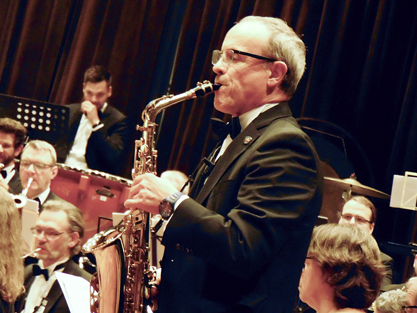 Maß zu halten, denn der „nächt- liche Ausflug“ beginnt ja gerade erst. Die Szenerie beruhigt sich in B ein wenig. Man richtet sich, wenn man es so sehen möchte, noch einmal das „Ausgeh-Ge- wand“, um dann, ab C über 16 Takte, nun endlich in Feierlaune in die Nacht zu entschweben. Ab D brilliert eine solistische Trompete mit einem neuen Ge- danken, quasi einem dritten The- ma, welches von einer „stolzie- renden“ Klarinette fortgesetzt wird. In E, einen Ton höher ge- rückt, übernimmt das Holz diesen Gedanken und entschleunigt ihn mit Hilfe eines prägnanten Schlussmotivs, in Tateinheit mit einem allargando und einem Takt- wechsel. Das Ganze hat etwas „flanierendes“ und etwas „dialo- gisierendes“. Man spaziert über die „Vergnügungsstraße“, grüßt hier, grüßt da, stoppt für ein Schwätzchen und zieht weiter. F setzt diese Ideen, eher kam- mermusikalisch, weiter fort und ab G scheinen wir das Zentrum der „bright lights“ erreicht zu ha- ben, denn nun tobt das Leben im gesamten Orchester. Vor I sorgen solistische Mittelstimmen mit dem zweiten Thema noch einmal für eine Standortbestimmung, be- vor in der Folge das Wogen in I und J so interpretiert werden könnte, dass man wohl nun so langsam einmal Ausschau hält, wo man denn nun einkehren könnte. Kammermusikalische Passa- gen und Tuttipassagen wechseln ab, die Themen blitzen immer wie- der auf und schlussendlich findet man bei N (Slow Blues) kurze Be- ruhigung. Ein „jazziges“ Solo-Sa- xofon, im Wesentlichen mild be- gleitet im „walking-stile“ von Po- saunen und Basstuba, verbreitet ein wenig „Bar-Atmosphäre“. Hier lohnt es sicher, sich ein wenig Zeit zu lassen und z. B. die Akkorde, besonders im gedämpften Blech, zu genießen. O durchbricht für acht Takte das „beschwingte“ und zeichnet, holzdominiert, eine eher dunkle, ruhige, gar etwas verruch- te Stimmung. In P, wieder langsam und ruhig, aber in Swing-Attitüde, zunächst ein Überraschungsgast: die solistische Bassklarinette. Sparsam begleitet von Stabspie- len und hohem Holz, bevor dann das Saxophon wieder übernimmt. Oboe und Fagott leiten ab Q keck und witzig über zum letzten Teil des Abends. Das Tempo zieht wieder an und die Partitur füllt sich wieder auf, diesmal von „oben“ nach „unten“. Es öffnet sich nach einem Zwischenspiel R, quasi in Opener-Manier, ein gro- ßes Tutti in S. Breit und kraftvoll leuchten noch einmal die „Lichter der Großstadt“, bevor, eingeleitet durch ein kleines Waldhornsolo (verbreiteter Themenkopf), sich dann doch eine schläfrige Stim- mung ausbreitet, die in den hohen Hölzern einen vergleichsweise strahlenden, wie aber beruhigen- den und offen abschließenden Ru- hepunkt findet. Die letzten 23 Tak- te gehören dann, im zügigen alle- gro, wieder dem Orchestertutti, welches mit großer Geste das Werk fulminant ausklingen lässt. Instrumentation und Partitur- bild „Bright lights... city nights“ ist mit groß gedruckter Partitur ver- legt. Die ermöglicht dem Dirigen- ten rein optisch eine angenehme Probenarbeit. Die Instrumentation ist „klassisch“ im Sinne des an- gestrebten Zeitgeistes der Kom- position und stellt grundsätzlich keine übertriebenen Anforderun- gen. Aber, wie so oft, steckt auch hier der Teufel im Detail. Die allgemeinen recht hoch ge- steckten Anforderungen an Arti- kulation sind schon wichtig zu be- achten um den „Charme“ dieser Musik abzubilden. Kleinere Soli oder kammermusikalische Passa- gen lockern das Klangbild immer wieder auf, dass im Gegenzug auch häufiger mal gerne sehr dicht und massiv daherkommt. Fachberichte Gerade bei den dichten und mit Verdopplungen arbeitenden Pas- sagen ist ein kluges Umgehen mit der Dynamik und den Intensitäten von Nöten, damit aus „Fülle“ be- wegende „Energie“ wird und man nicht „swagger and panache“ - „Schwung und Koketterie“ - ver- liert. Fazit Während dieser etwa neun Minu- ten fühlt man sich schon zurück versetzt in die „gute alte Zeit“ des aufbrechenden „Showbizz“ der zwanziger Jahre. Man schnuppert ein wenig „Broadway-Atmosphäre“ jener Tage und verspürt Lust, in die spezielle Romantik dieser Zeit, in die „Lichter der Groß- stadt“, einzutauchen. Stilistisch lebt hier die Harmo- nik und Melodik der Komponisten rund um George Gershwin defini- tiv wieder auf. Dies aber, ohne rein kopierend, die bereits von die- sen Kollegen betretenen Pfade schlicht nur zu reproduzieren. „Bright lights... city nights“ ist eine eigene Komposition, die ein- deutig für Blasorchester geschrie- ben und angelegt ist. Sie orien- tiert sich an dessen Klangmög- lichkeiten und Stärken. Somit läuft sie auch nie Gefahr, wie zwangsläufig bei Arrangements bekannter Titel, wie z. B. bei Schlagern jener Zeit gelegentlich notwendig, Kompromisse machen zu müssen. Sie transportiert den Zeitgeist jener Tage mit ureigenen Mitteln eines Blasorchesters und macht daher eben einem solchen sicher Freude beim Musizieren. y a b a x i ü , a a h c s a s s e e r d ; : o t o F 9