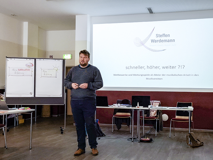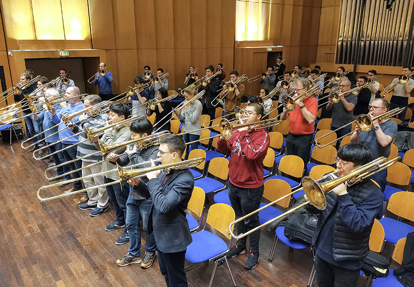 und lass sie mit wie mit einem lauten Gähnen wieder sinken. Öffne den Mund richtig weit (es sieht ja niemand zu) und lass beim Gähnen die Tohnhöhe im gleichen Maß absacken. Mit dieser Übung erreichst du eine hervorragende Enstpan- nung des ganzen Kehlkopfes. Fachberichte len Level. Die Posaune macht was DU willst, und nicht anders he- rum. Wenn du mehr Zeit zum Üben hast- – bestens! Dann bist du jetzt auf das Spielen von Übungen dei- nes Lehrers, oder das Üben an ei- nem Musiktitel perfekt vorberei- tet. Beides wird dir nach einem solchen Warm-Up mit Sicherheit besser gelingen und schneller zum Erfolg führen, als wenn du kalt und unvorbereitet direkt mit schwierigen Passagen beginnst. Viel Erfolg und Freude, Mike Rafalczyk „Bb“ auf dem ersten, bis zum „E“ auf dem siebten Platz jeden Ton, solange du ihn halten kannst. Damit kombinierst du die Atmung mit den ersten Lip- penschwingungen. Das festigt den Ansatz, ist gut für einen schönen Ton und ist darüber hi- naus auch hilfreich für spätere, hohe Passagen. 4.Bindung und Stoß Ich habe dir bereits in einem früheren Profitipp (professio- neller Posaune spielen, Teil 2) Lippen- und Zungenübungen vorgestellt. Diese Übung gehört seit Jahren zu meinem täglichen Pflichtprogramm und ich habe damit die besten Erfahrungen gemacht. Spiele diese Übung auf allen sieben Plätzen, einmal gebunden, einmal jeden Ton kurz angestoßen. Wahrscheinlich sind nach diesen vier Übungen fünf bis zehn Minu- ten deiner Übezeit schon rum. Selbst wenn deine Zeit an man- chen Tagen für mehr nicht reichen sollte: mit Hilfe dieses Trainings hältst du das Niveau deines An- satzes und Tones auf einem stabi- 2.Warm-Up für die Atmung Spitze die Lippen wie zum Pfei- fen. Durch diese kleine Öffnung ziehst du nun tief die Luft ein. Dabei atmet dein Körper auto- matisch richtig, denn er hat das Gefühl, gegen einen Widerstand einatmen zu müssen. Du atmest automatisch mit dem Zwerch- fell. Wederhole das ein paar Mal. Dann bläst du die Luft ei- nige Male durch die noch ge- spitzten Lippen stoßweise wie- der aus, als ob du eine Reihe von Kerzen auspusten woll- test. Dabei sollte dein Zwerchfell ebenfalls au- tomatisch aktiv werden. Beide Teile dieser Übung kannst du kontrollieren, indem du mit beiden Hän- den, Daumen und Zeigefin- ger wie zu einem „L“ abge- spreizt seitlich leicht unter- halb der Rippen anlegst. Dann spürst du, wie beim Ein- und Ausatmen das Zwerchfell die Hände nach außen drückt. Letz- ter Teil dieses Abschnit- tes: nimm dir einen klei- nen Zettel, stelle dich vor eine Wand oder eine Türe und versuche, den Zettel mit gespitzten Lippen „an die Wand“ zu blasen und so lan- ge, wie möglich dort zu hal- ten. Auch das wird nur funk- tionieren, indem du durch das Anspannen der Bauch- decke dein Zwerchfell be- nutzt. Das ist die sagen- umwobene Atemstütze. 3. Die ersten Töne Jetzt nimmst du die Po- saune zur Hand, holst tief Luft und spielst vom großen www.jupiter.info Mike Rafalczyk Als Posaunist, Bluesharpspieler und Sänger Tourneen, Konzerte und Studioaufnahmen mit folgenden Musikern/Bands: Von 1999 bis 2011 festes Mitglied bei Albie Donnellys “Supercharge“„Champion“ Jack Dupree, Peanuts Huckoo ( USA, Musiker bei L.Armstrong/Glenn Mil- ler), Ken Colyer ( tp, GB ), Roy Williams ( tb, GB), John Barnes ( sax, GB ), John Crocker ( sax ) und Vic Pitt ( b ), beide Musiker bei Chris Barber, Phillip Catherine ( g, F ), Musiker an den Theatern: Duisburg, Oberhausen, Dortmund, Wuppertal, bei Produktionen wie: „Dreigro- schenoper“, „Buddy Boldens Blues“, „Bugsy Malone“, „Girls, Girls, Girls“ 10 Jahre Musiker bei den „Komm´ Mit Mann!s“ Festivals in: Dresden, Kempten, Bilbao (E), Eslöv (S), Basel (CH), St. Guermine (F), Copenhagen (DK), Verona (I) 11