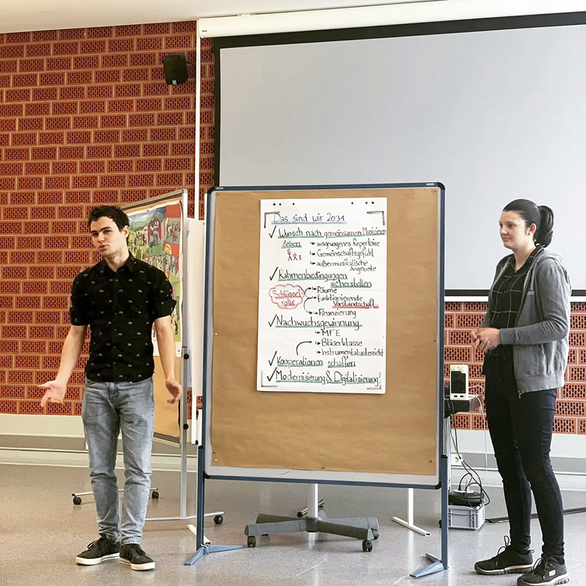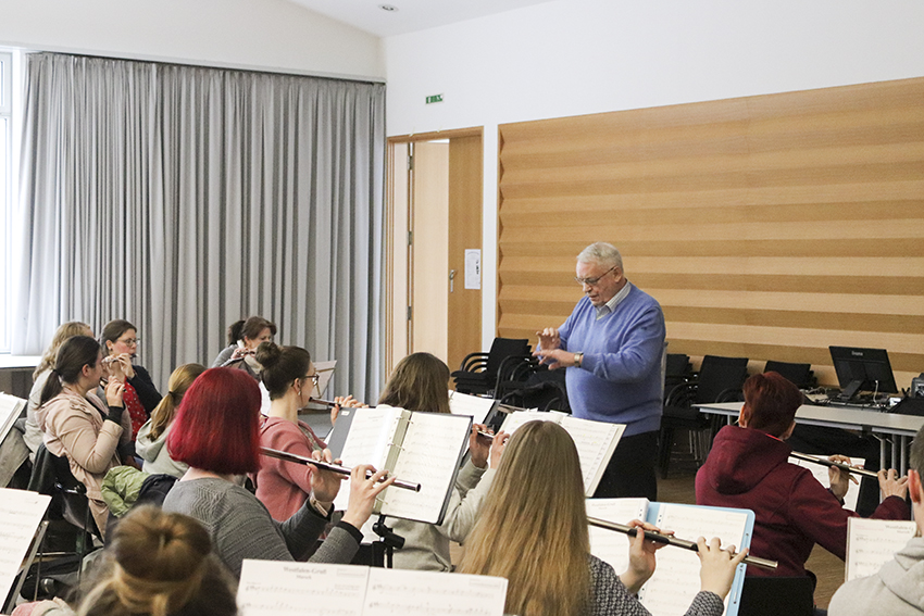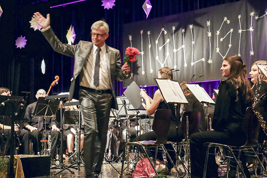 Brüder und er verzieh ihnen. Aus kindlicher Sicht (Buch und Texte von Tim Rice) vermittelt eine Erzählerin die Story, die weniger „biblisch“, als eher knallbunt und durchaus auch parodistisch daher kommt. Das gilt gleichermaßen auch für die Musik, die sich gar vieler Stile bedient. Ein musikali- scher Mix, der von Country-Balla- den über Chansons bis zu Rock’n’Roll reicht und der sich nicht scheut, gelegentlich bekann- te Musiker wie Harry Belafonte oder Elvis Presley insgeheim wie- der aufleben zu lassen. Der be- kannteste Song ist wohl „Any Dream Will Do“. Er erscheint gleich zu Beginn, von Joseph ge- sungen, in Rückblende die eigent- liche Handlung einleitend und auch später noch einmal, im Du- ett zwischen Joseph und der Er- zählerin, das große Finale einlei- tend. Aufbau des Arrangements von Michael Sweeny Die ersten zwölf Takte leiten ganz unbekümmert ins Geschehen ein. Nach vier Takten harmonischen Vorspiels, dünn, aber mit klarer Klangvorstellung instrumentiert im hohen Holz, präsentiert das Horn das Thema von „Jacob And Sons“ vorgreifend und in liedhaf- ter Schlichtheit. Ab Takt 17, dem vier Takte in „Opener-Manier“ vo- rausgingen, folgt der fanfarenar- tige Einsatz des Themas „boldly“ (kühn, mutig, frech) und führt zur ersten wirklichen Liedpräsentati- on im rockigen Stil. Im „mf“ der Mittelstimmen, sparsam begleitet von Klarinettenakkorden, baut sich, in allen Belangen steigernd, der Song auf und endet ritardie- rend in einer Fermate. Diese gibt nicht nur Zeit zum in- nenhalten, sie stoppt das rockige Element durch plötzlichen Stau und aus dem Ruhepunkt heraus wandelt sich der Groove abrupt von Duolen- in Triolenfeeling. Im leichten 4erBeat bahnt sich über zwei Takte Rhythmus und vier Tak- te harmonischer Einleitung im sanften Swing-Shuffle „Any Dream will Do“ seinen Weg. Ab Takt 57 zunächst als Trompetensolo, vom Holz sparsam begleitet, ab Takt 65 dann umgekehrt und voller in- strumentiert. In Takt 73 wird der intensivere b-Teil des Liedes er- reicht. Die Wiederaufnahme des a-Teils im vollen Orchestertutti adelt dann eine Modulation, die absolut wirkungsvoll, wie auch kli- scheehaft, durchaus einen Zwi- schenhöhepunkt erarbeitet. „Menacing“ (Gefahr signalisie- rend) leitet erneut ein Fanfaren- motiv über zum Rock-Shuffle „Song Of The King (Seven Fat Cows)“. Grooviges Blech bereitet den Saxophonen den Weg, die ab Takt 104 stiltypisch die Szene rocken. Ab Takt 116 geschieht das dialogisierend mit den Trom- peten. Ein Half-Time-Swing been- det, triolisch dominiert, in fast klassisch, verruchter Bar-Atmo- sphäre, den Titel und lässt das Orchester im Tutti und im ff ein durchaus entspannendes (instru- mentales) „Oh Yeah“ ausrufen. Romantisch wird es ab Takt 136. Nach vier Takten beruhigend wirkender Akkorde fließt im sanf- ten Dreiertakt die Melodie von „Close Every Door“, einer Ballade, quasi ausschließlich aus dem Kla- rinettenregister. Ab Takt 148 über- nehmen mild Querflöten und Oboe, ebenso mild begleitet von unaufdringlichen Klarinetten. Blech und Mittelstimmen gestal- ten mit Effekt den Beginn der Schlussgruppe, die aber betont sanft wieder im Klarinetten-Unis ausklingt. Aus dem verhallenden Endton erwächst „moderately fast“, de- zent aber in neuem treibenden Groove (sechszehntel orientiert), die Einleitung des gospelange- hauchten „Go Go Go Joseph“, dann im Achtelgroove (und mit deutlichem „backbeat“). Die sechszehn Takte werden quasi ge- teilt von einem burlesque anmu- tendem 2/4 Takt, gefolgt von ei- ner klangsteigernden Modulation. Ab Takt 184 werden Instrumenta- tion und Dynamik dünner, das Tamburin im 16tel-Groove sorgt aber auffällig für „Energie“. Ein Kopfmotiv zieht dialogisierend (Trompeten, Saxophone, Holz) sei- ne Bahnen und mündet ritardie- rend in die Schlussgruppe, einge- leitet von einem Fanfarenmotiv, das dann zur Coda auswächst. Marcus Graf über seine Version Marcus Graf, Orgelbauer, studier- ter Trompeter und Dirigent, Stadt- kapellmeister und Musiklehrer in Schongau hat sich ebenfalls mit der Musik zum Musical „Joseph“ beschäftigt. Er wählte im Prinzip die gleichen Songs aus, tauschte aber „Close Every Door“ gegen „Poor Pharao“, wählte z. T. andere Tonarten, gewichtete die Länge der Songs anders und instrumen- tierte mit anderen Schwerpunk- ten. „Meine erste Motivation war, für ein Kirchenkonzert ein peppiges, modernes, rockiges Abschluss- Fachberichte stück zu finden, natürlich mit bib- lischen Hintergrund. So passte das Musical „Joseph“ perfekt zum Programm. Die Besetzung sollte mit Tenorhorn und Bariton sein, die Trompeten sollten strah- len und im Rahmen einer guten Mittelstufenkapelle auch nach über einer Stunde Konzert gut spielen und intonieren können. Das bekannte „Any Dream Will Do” sollte nicht zu kurz kommen und der Schluss sollte kraftvoll sein, da das Werk das Konzert be- enden würde. Mir war auch wichtig, jeder Mu- sikerin und jedem Musiker lohnen- de Aufgaben zu stellen. Die Instru- mentierung sollte Anreize für alle beinhalten und keine Unterforde- rung aufkommen lassen. Jeder sollte mit einer gewissen pädago- gischen Herausforderung seinen Part gut spielen können und da- mit das Stück auch mit Freude spielen wollen. Dazu beschloss ich, Artikulationen und Rhythmen eng der Gesangsversion der deut- schen CD-Aufnahme anzupassen, denn die war die Hörprobe für die Musiker, um ihnen das Stück, den Text und die gesamte Geschichte näher zu bringen. In den Proben konnte ich somit immer wieder Brücken zur Aufnahme schlagen. Mein Ziel war es, ähnlich wie die Musicaldarsteller zu „spielen“ und „aufzuspielen“, die Bläser, quasi durch das Instrument sin- gend, in die Lage zu versetzten, eine lebendige Instrumentalversi- on abzubilden.“ Fazit Michael Sweeny liefert ein klassi- sches Grade 3-Arrangement ab, welches nicht nur funktioniert, 11