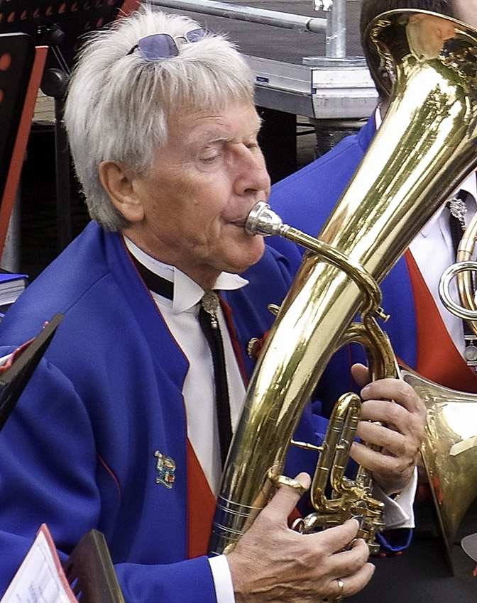 Renold Quade Mal konkret … Handwerk – Analyse – Interpretation, „Bläck Fööss In Concert“ im Arrangement von Peter Schüller – Teil 2 Fachberichte Der Aufbau Teil 2 – „Die letzten 20 Jahre“ Unser Stammbaum (2000) Diese Popballade beschreibt glei- chermaßen schlicht wie überzeu- gend, wie sich, aus vielen Ethnien heraus, über Jahrhunderte hinweg die heutige, in Köln als „Kölner“ lebende, Gesellschaft zusammen- gefunden hat. Achtung, Respekt, Toleranz und Neugier laden ein zu einem kölschen, Welt offenen Le- ben. Sechs klanggewaltige Takte, die beiden letzten mit crescendo, öff- nen den Vorhang zum zweiten Teil. Es wird sofort wieder ruhiger und solistischer. Nach kurzer Ein- leitung sind ab A Horn (Tenor- horn), Altsaxophon, Trompete und Fagott (Tenorsaxophon), je kurz solistisch aufblitzend, im Vorder- grund (Vers). Ein eintaktiger, stol- pernder Taktwechsel rüttelt wach hin zum Refrain. Der hat grund- sätzlich schon hymnische Züge, die sich besonders zum Ende der Wiederholung hin, voll instrumen- tiert, noch verstärken und modu- latorisch, in der Fermate mit de- crescendo und verspieltem Zu- satzmotiv mündend, zum „Mori- taten -Rubato“ überleitet. He deit et wih un do deit et wih (2009) Augenzwinkernd und selbstiro- nisch bekennt dieser Walzer, dass der Zahn der Zeit an keinem vo- rüberzieht und „Jedermann“, auch z. B. eine über Jahrzehnte erfolg- reiche Band, gelegentlich in die Schranken weist. Fazit: Nehme das hier und jetzt mit Freuden, denn wenn du nichts mehr spürst, dann bist du auch nicht mehr da. Ab C, quasi parlierend und zu- nächst noch im Vierertakt, musi- zieren Oboe (Altsaxophon), Quer- flöte, Klarinetten, Horn und ge- dämpfte Trompeten im Rubato- Dialog (Vers) mit Fermatenschluß. Acht Takte vor D etabliert sich über zweimal vier Takte, getragen von Posaunen und Saxophonen, ein Walzerrhythmus, der in der Folge in den Tenören des Orches- ters die ruhig erzählende Melodie des Refrains ansiedelt. Deren vier- taktige Schlusswendung wird, quasi selbstkommentierend und modulierend kurz zur Überleitung genutzt, um ab E, im vollen Tutti und einen Ton höher, den Refrain nun etwas beschwingter zu prä- sentieren. Ab F wird die bereits bewährte Substanz der Schluss- wendung, zunächst ohne Punktie- rung, dann mit Tonverlängerun- gen und schließlich mit verspiel- ten Achtelläufen zur Coda um- funktioniert. Mer bruche keiner (1998) Eine Karnevalssamba mit einem klaren Bekenntnis zum originären Kölner Karneval. In dessen Zen- trum stehen traditionelle Werte, symbolisiert durch „ Pappnas“, „Decke Trumm“, und „prima Prum“, aber durchaus auch Indi- vidualität heutiger Tage zwischen „Mötz“, „Lederjack“ und „Frack“. Auswüchsen anderer „Partykultu- ren“ erteilt man eine Absage. Kar- neval feiert man in Köln seit über 2000 Jahren in „kölschem Sinne“ und es gibt keinen Grund davon abzuweichen. Stadionatmosphäre. Die Schlag- werker eröffnen mit stampfenden Triolen, ergänzt von Rufen aller Orchestermitglieder. Dem folgt ein energetischer Sambarhythmus mit finalem Schlachtruf „Ahl Säu“, dem sinnstiftenden Namen einer speziellen kleinen Kölner Karne- valsgesellschaft. Der Boden ist nun bereitet für eine fulminante Show-Samba-Party-Einleitung im Tutti. Ab I tragen Saxophone und Tenorhorn/Bariton die erlangte Energie, auch im dynamisch re- duziertem mf, konsequent weiter und beginnen mit dem ersten Me- lodieteil des Refrains. Kleine Ein- würfe würzen komplementär. Ab J der zweite Teil des Refrains, eher im forte und etwas dichter instrumentiert, was sicherlich sei- ne größeren „Mitsingqualitäten“ unterstützt. In K bricht sich dann wieder die Showtime-Samba ihre Bahn. Sie überzeugt unwidersteh- lich, mitreißend und gemein- schaftsstiftend und kommt zudem textlich mit einfachem „la“ aus. Die letzten elf Takte bilden eine Coda aus den bekannten Substan- zen. Rut un wiess (2009) Ein Mix aus Walzer und Rock und eine unmissverständliche Liebes- erklärung an die Kölner Stadtfar- ben und das Kölner Gefühl des Zu- sammenhalts. Das Lied beleuchtet die unumstößliche Strahlkraft von Rot und Weiß, hinein in alle ge- sellschaftlichen und sozialen Schichten Kölns. Zwei sanfte Fermaten im solis- tischen Fagott (Tenorhorn/Bariton) beruhigen unmissverständlich. Sie sind bereits die Auftakttöne zum folgenden Walzer, der dem Solofa- gott, dünn instrumentiert, im Stil einer Spieluhr, nur wenige Klari- netten (Saxophone) begleitend zur Seite stellt. In der zweiten Hälfte des Refrains wird das Bariton klangsteigernd mit dazu genom- men. Im letzten Takt der Walzer- melodie mutiert das Metrum ab- rupt zum vierer und packt die ge- mütliche Walzermelodie ab M in ein knackiges Rock-Gewand. Zu- nächst „grooved“ eine achtaktige Einleitung im Tutti, wobei die Trompeten noch bewusst ausge- klammert bleiben. Mit aufwendi- ger triolischer Notation der Rhyth- miker und klaren Artikulationsan- gaben in den Bläsern bringt der Arrangeur unmissverständlich sei- ne Groove-Vorstellungen zum Aus- druck. Ab N, insgesamt ausge- dünnter in der Instrumentation, dynamisch im mf und dabei aber mit nicht weniger Energie, über- nehmen die Trompeten die Füh- rung. Saxophone und Klarinetten füllen die langen Melodietöne kom- plementär mit vorantreibenden Einwürfen. Die letzten vier Takte 15 t d n e r h A s a m o h T e d 7 5 1 o d u t s , t a v i r p . i : s o t o F